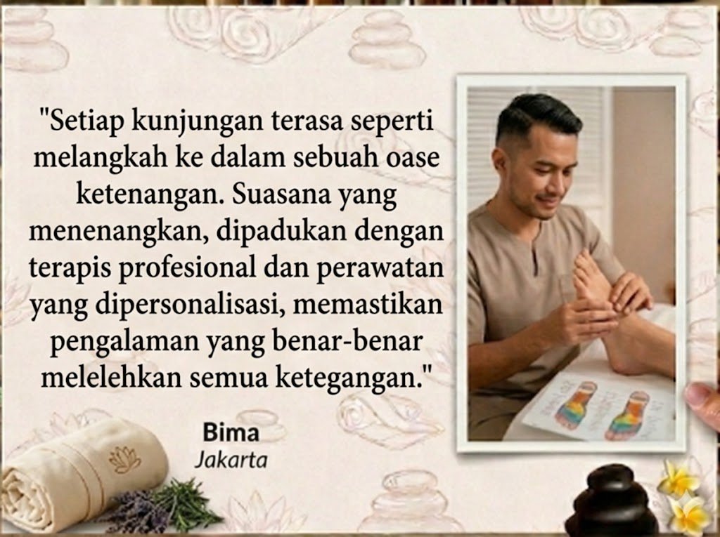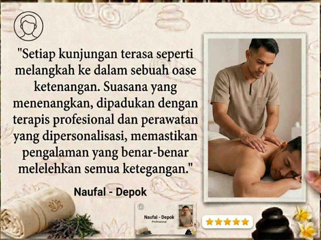 " Setiap orang berhak memiliki ruang yang tenang untuk kembali terhubung dengan dirinya, sebagaimana Lanang Pijat Spa Relaxation menghadirkan kisah-kisah kenyamanan dan ketenangan "